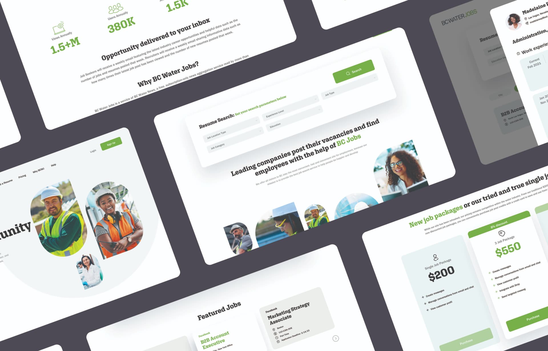 The existing site only allowed users the ability to create an account and create and publish job listings. Additionally, Brown and Caldwell only had the ability to offer jobs at one price, so sales lacked the flexibility to offer packages or incentives, and the resume builder was unsophisticated and offered a frustrating user experience.